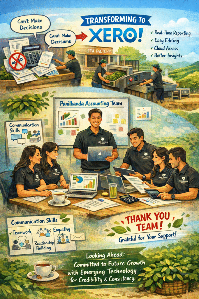 The transformation journey was not always easy especially as our operations involve both bank and cash transactions. Working closely with the Panilkanda Team, especially Mansging Director Shantha Horawala Withana, Kanchana(current accountant) and Pasan Shalutha (my brother)’s continuous support throughout the transformation, we were able to streamline workflows and introduce more structured financial practices.